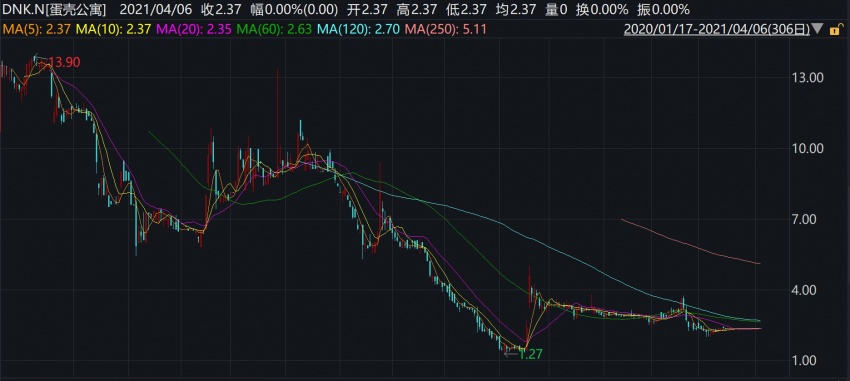 从蛋壳公寓的股价走势来看,始终未能给投资者一个满意的回报。