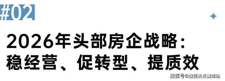 典型房企2026年战略计划清晰地指向了企业未来的发展方向,即告别规模发展,聚焦品质提升、效率优化与发展模式转型,坚持轻重并举、增存并重,才能穿越行业周期。