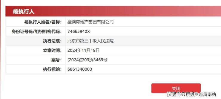 据中国房地产开发企业信用信息平台显示,近日,融创房地产集团有限公司新增多条被执行人信息。