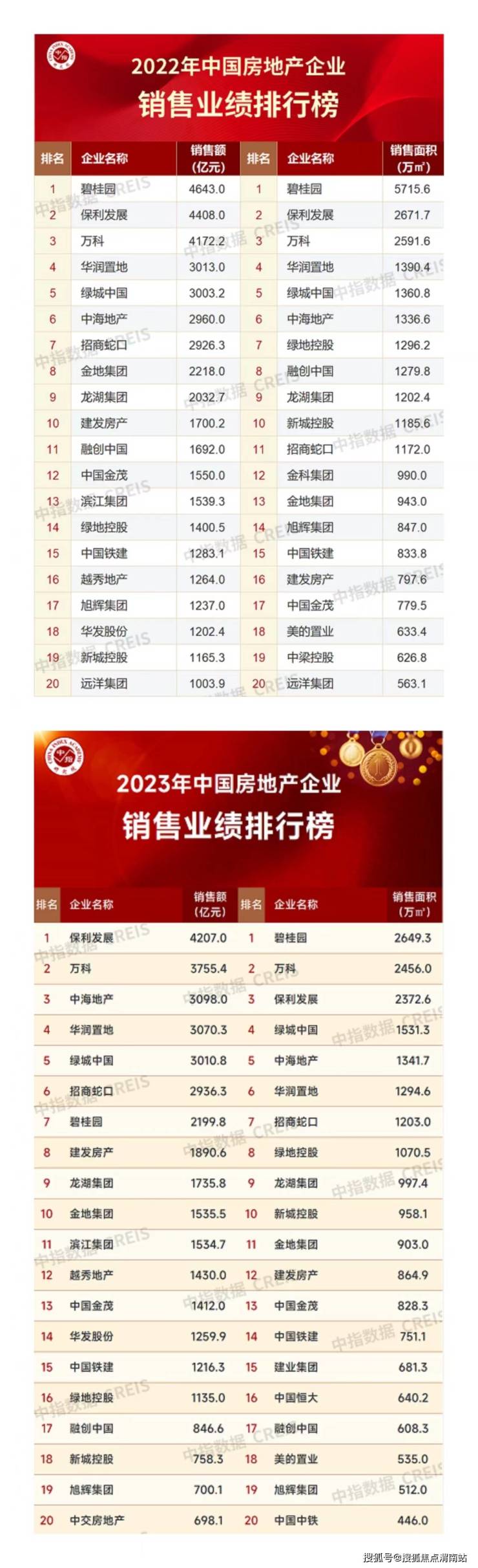 与2022年相比,房企2023年业绩座次也再度发生变化:保利发展稳居榜首,碧桂园跌至第七,中海地产进入TOP3。值得一提的是,中交房地产跃升10位进入TOP20,而2022年还在TOP20行列的远洋集团则滑落至35位。