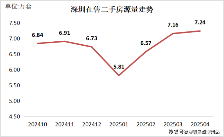 截至2025年4月30日,据深圳市房地产信息平台公开在售二手房数量统计,深圳全市有效在售二手房源72391套,对比上月同期统计的71590套在售房源增加801套,环比增长1.1%,业主委托出售意愿持续保持较高水平。