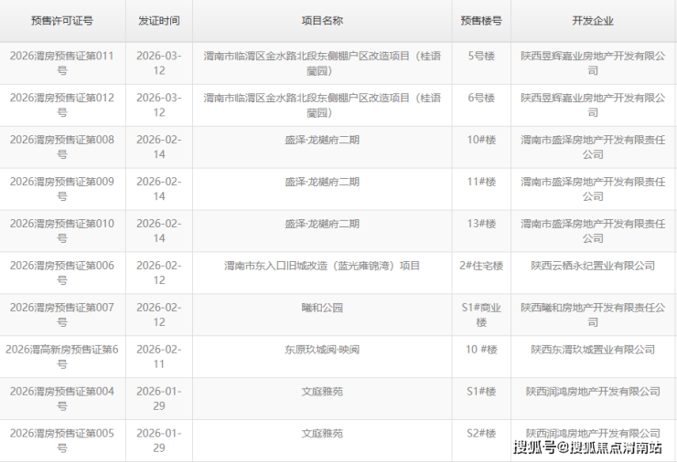 五、渭南楼市上周(2026年3月30日-2026年4月5日)预售证公示信息
