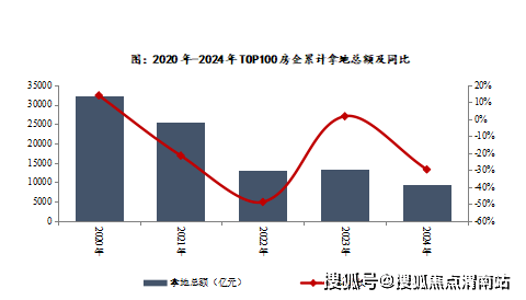但是综合来看,2020年-2024年间,TOP100企业拿地总额总体呈下滑趋势,2024年不足2020年的三成,特别是民营房企拿地锐减,这与房地产市场下行、融资环境偏紧、民营房企违约事件频发密切关联。