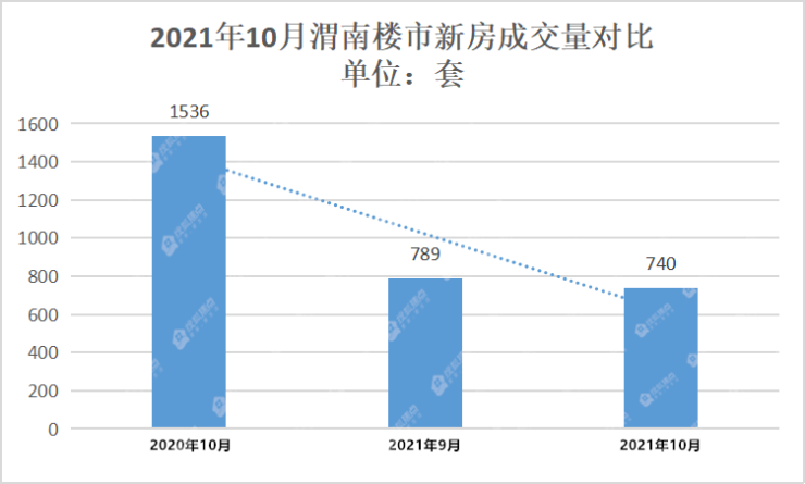 据搜狐焦点渭南站统计:2021年10月新房成交套数740套,环比2021年9月新房成交套数789套,下跌49套;同比2020年10月新房成交套数1536套,下跌796套。