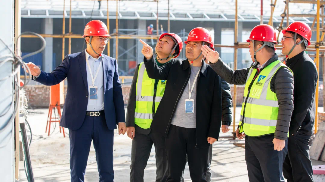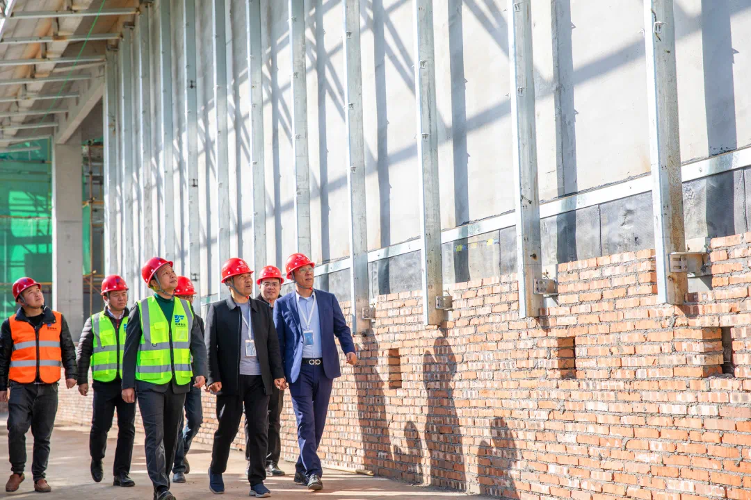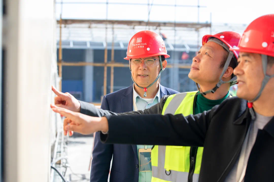 仪式后,双方团队在施工现场展开外立面施工图纸,针对现场施工问题进行深入细致的研讨交流。
