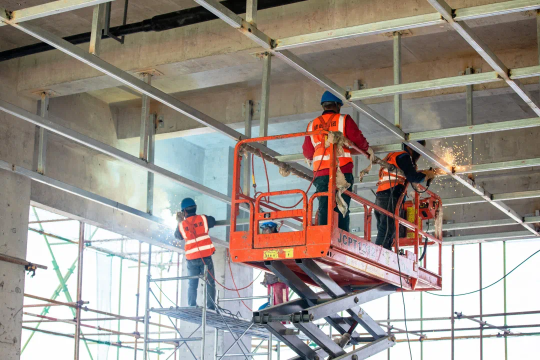 工地上,外墙钢架龙骨正在进行焊接,蔡总提到,这种高强度铝合金板材,强度与刚性十足,能保证长期使用,并具有很强的抗风抗震能力。此次还原上上玫瑰园生活馆外立面设计的工艺对团队来说是具有很大挑战的,为了还原大师设计,上上地产不惜投入巨额成本,采用了超大超宽的铝板,平整度的控制以及材质自然下垂的惯性问题处理,需具有多年经验的施工人员才能把握。
