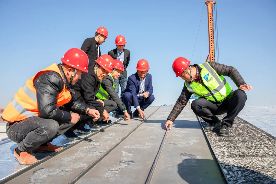 随后,一行人来到生活馆屋面施工现场。本次上上玫瑰园生活馆整体屋面,全部采用“钛锌板”材质铺装。钛锌板作为一种高端进口材料,造价高昂,每平米近2000元,高度耐磨耐腐蚀,并具备静音降噪、自清洁、自修复、风格百搭等多重优势,使用寿命可达150年之久。蔡总感慨道,排名前列次在三四线城市看到这么大的手笔,可见上上玫瑰园确实在践行品质至上的选材理念,上上地产的真挚匠心一定能被这座城市铭记。