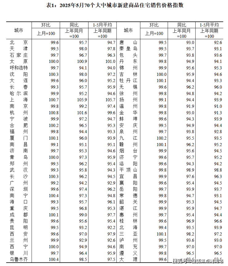 中房网讯 (苏晓/文)国家统计局近日发布的《70个大中城市商品住宅销售价格变动情况》显示,5月房地产市场继续朝着止跌回稳的方向迈进。70个大中城市中,各线城市商品住宅销售价格环比下降,同比降幅继续收窄。