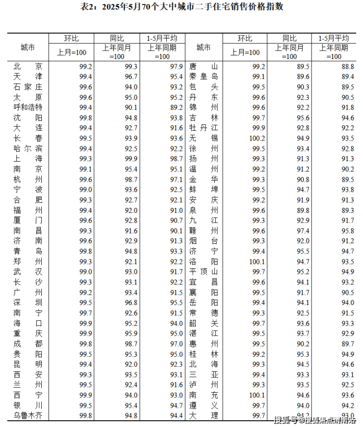 二手住宅价格方面,和新房一样,5月份上涨的城市数量有所波动。国家统计局数据显示,5月份环比上涨城市有3个,比上月减少2个;同比上涨城市为0,与上月一致。