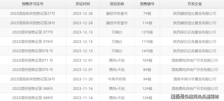 五、渭南楼市上周(2023年12月25日-12月31日)预售证公示信息