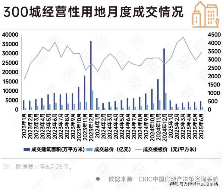 CRIC数据显示,2025年上半年,全国300城经营性土地成交建筑面积2.5亿平方米,较2024年同期下跌8%,再度刷新2010年以来的上半年新低纪录。各月份成交规模均保持同比回落,二季度以来同比降幅有所扩大。