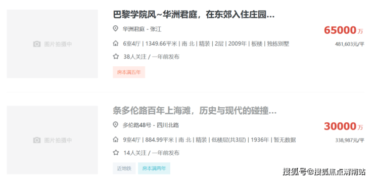 比如上海,链家上就有37套过亿豪宅被挂出,最贵的一套独栋别墅挂牌价6.5亿,还有一套老洋房挂牌价3亿元,此外还有汤臣一品、古北壹号、翠湖天地等耳熟能详的楼盘。