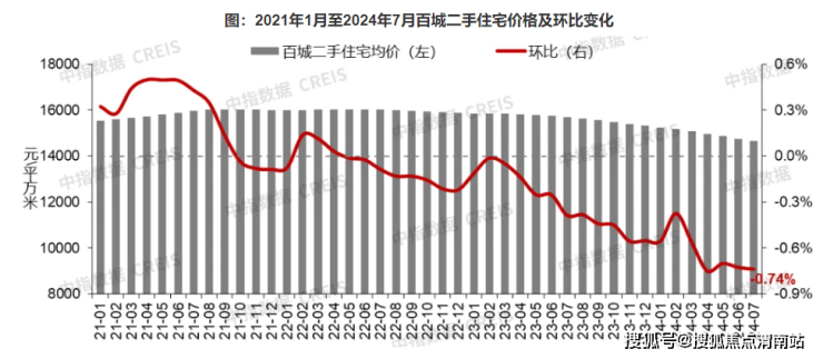 中国房地产指数系统百城价格指数显示,7月全国100个城市新建住宅平均价格为16443元/平方米,环比上涨0.13%,涨幅较6月收窄0.02个百分点。二手住宅方面,以价换量趋势延续,百城二手住宅价格连续27个月下跌至均价14653元/平方米。