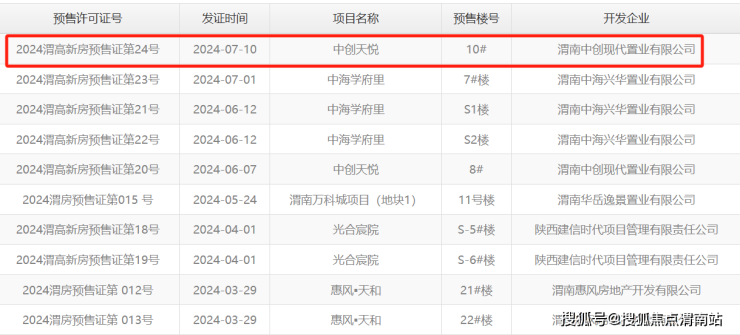 渭南楼市上周(2024年7月29日-8月4日),暂无预售证公示信息,因延后补录7月10日中创·天悦10#楼获得预售证信息,合计房源156套,以下是近期公示信息。