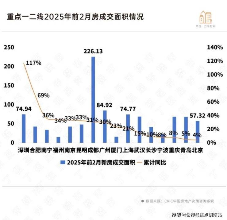 CRIC数据显示,2025年前2月重点一二线城市中有16城新房成交累计同比持增。