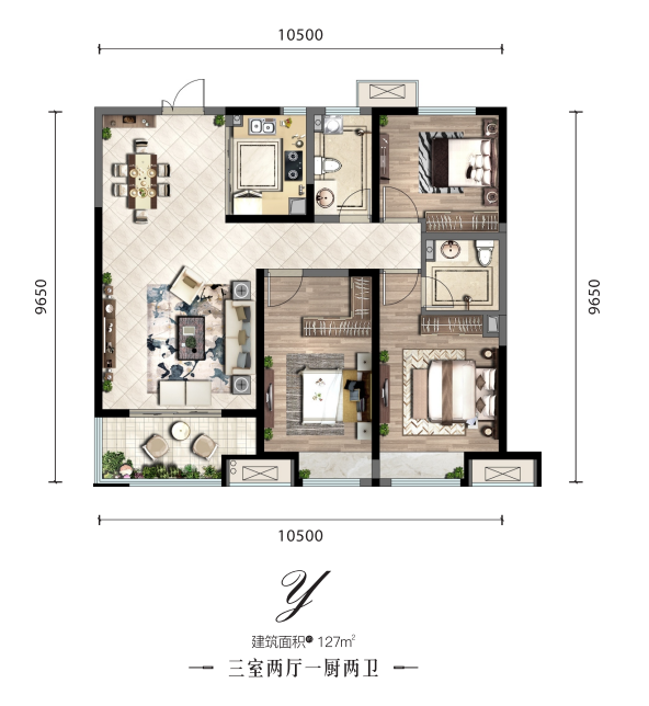 约127㎡三室两厅两卫,以5500元/㎡价格,35%的首付来算,首付24万,月供约2410元。