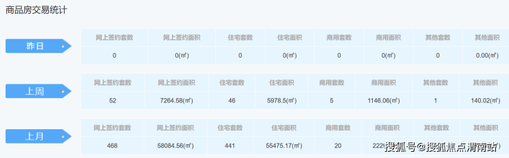 环比上周,总成交上涨45套,其中签约面积上涨6537.34㎡;住宅上涨40套,住宅面积下跌5281.5㎡;商用套数上涨5套,商用面积上涨1146.06㎡;其他套数持平1套,其他面积下跌109.78㎡。