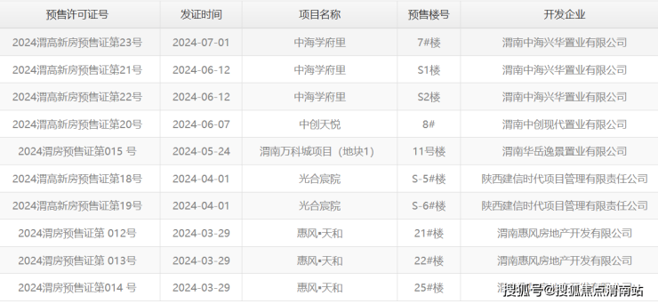五、渭南楼市上周(2024年7月15日-7月21日)预售证公示信息