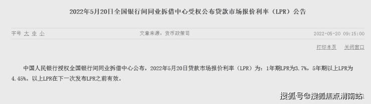 中新经纬5月20日电 今天(5月20日),新一期贷款市场报价利率(LPR)出炉。中国人民银行授权全国银行间同业拆借中心公布:1年期LPR为3.7%,与此前持平;5年期以上LPR为4.45%,此前为4.6%。