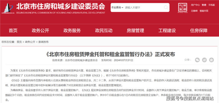 北京住房租金10月起将纳入监管账户,3个月以上租金需按月划转