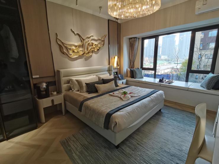 其中,172㎡户型做到三开间朝南、大尺度面宽,餐客厅一体,南向主卧室带观景飘窗,套房设计。