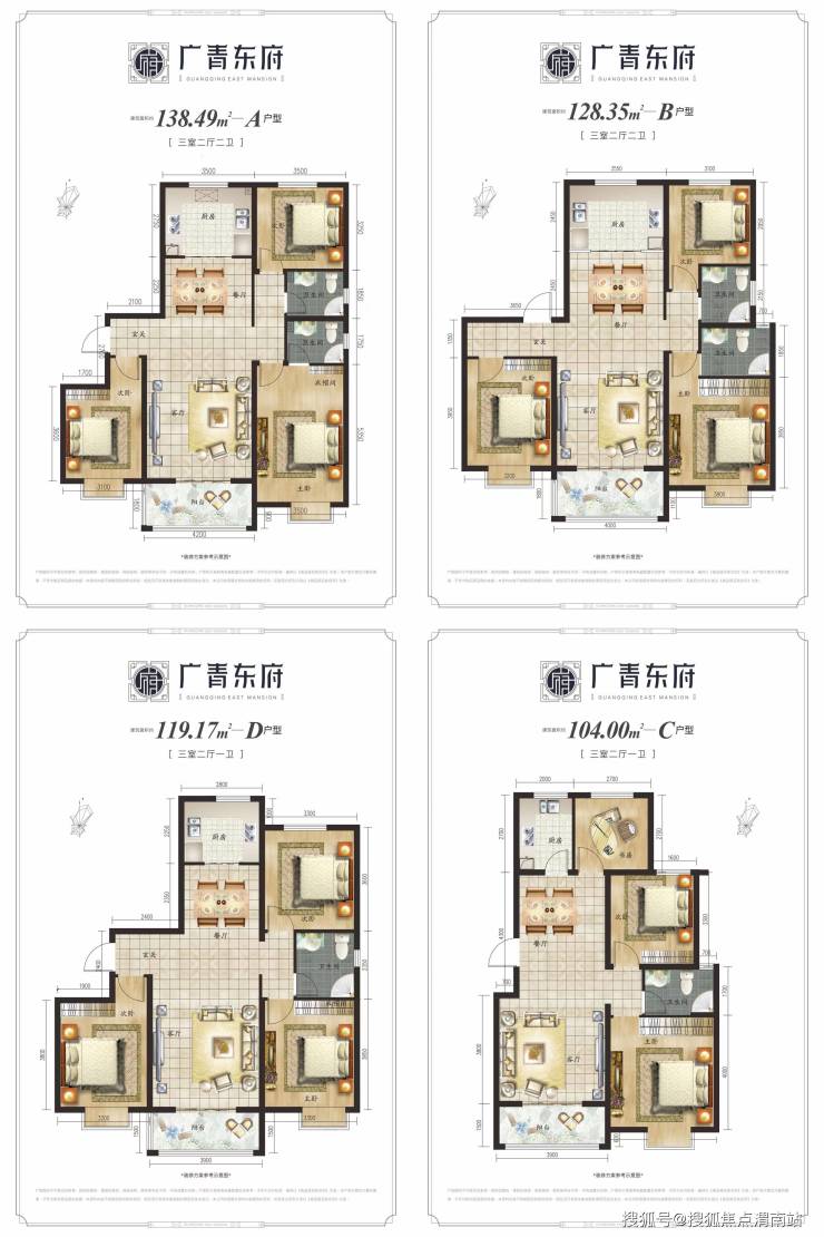 广青东府在户型的打造上不仅实现了户户皆是全明格局、南北通透,而且约103-138㎡的全能面积段也能充分满足二人世界、三口之家乃至四世同堂家庭的居住需求。