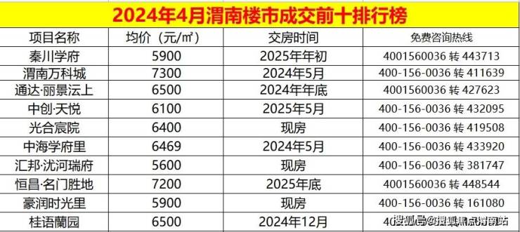 据搜狐焦点渭南站统计,2024年4月渭南新房成交TOP10楼盘分别为:秦川学府、渭南万科城、通达·丽景沄上、中创·天悦、光合宸院、中海学府里、汇邦·沋河瑞府、恒昌·名门胜地、豪润时光里、桂语蘭园。