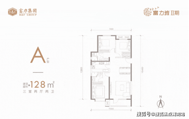 以建面约128㎡三室户型为例,户型方正三面朝南,提高空间利用率的同时,为室内带来更好的采光效果;干湿分离双卫设计,保护主人居住私密性,让日常起居更显从容;餐客通厅连同阔景阳台,延伸室内空间感,接待亲友更游刃有余。