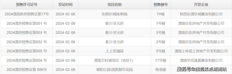 三、渭南楼市3月预售证信息