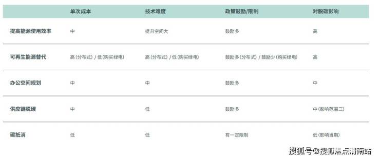 该份报告提出五大租户脱碳路径,包括提高能源效率、可再生能源替代、办公空间规划、供应链脱碳及碳抵消等。此外,报告也强调了优化办公空间策略的重要性,包括提高空间使用率、支持远程办公和会议、利用自动化和大数据技术、追求可持续认证和绿色租赁等多元化措施。