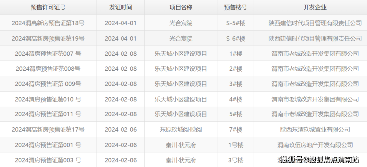 五、渭南楼市上周(2024年5月27日-6月2日)预售证公示信息