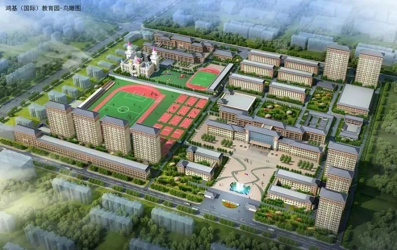 鸿基(国际)教育园建设项目是集团2019年重点建设项目,是集幼儿园、小学、中学和社会培训为一体的大型教育建设项目。项目占地330亩,建筑面积25万余平方米,提供学位8600个。目前,高中部已建成投用,建筑面积11.5万平方米,共16栋单体,设置120个教学班,提供学位6200个。新建项目包括幼儿园、小学部及餐厅、图书馆、运动场、公寓楼等,建筑面积13.5万平方米,概算投资3.5亿元,幼儿园设置15个班,可容纳幼儿450名,小学部设置56个教学班,提供学位1950个。