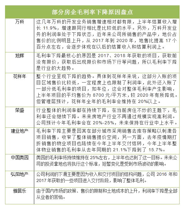 房企中报已披露完毕,但从各家房企披露的数据看,“毛利率下降”已成为房企不得不面对的现实。