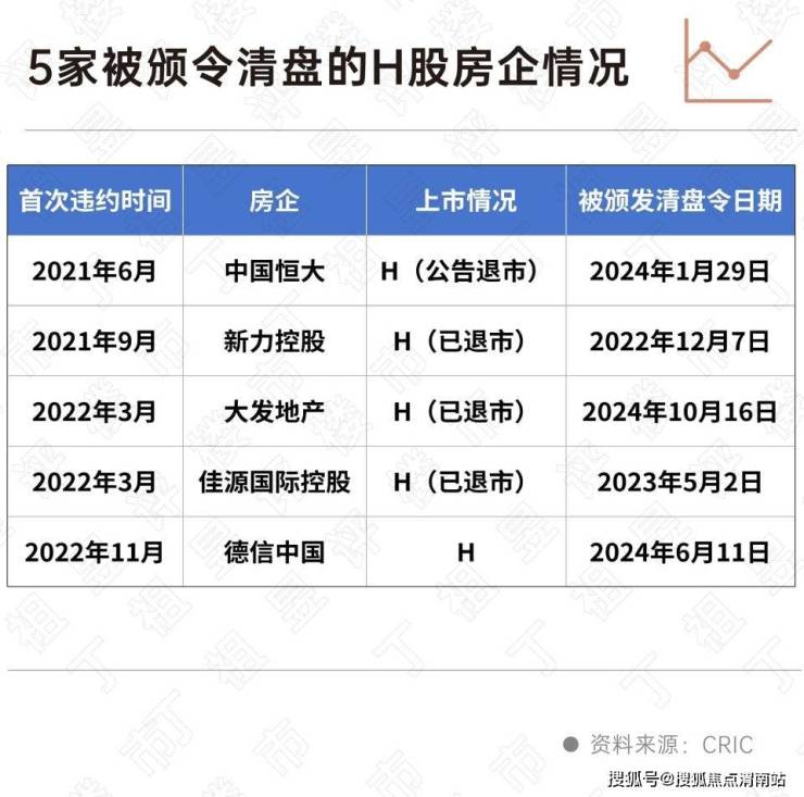 H股方面,49家H股上市的内房企中有27家收到过清盘呈请,其中德信、新力、大发、佳源国际和中国恒大5家企业已经被颁令清盘,12家房企的清盘呈请被香港高等法院颁令撤回。H股房企基本都在积极进行债务重组自救,尽量避免被清盘的情况发生。