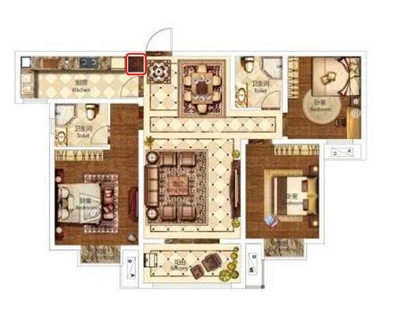 可以看到,三室两厅两卫建筑面积116㎡户型做到三房同时朝南,并且还罕见的做到了厨房也有朝南窗户,这一点非常难能可贵。而且三个卧室都有南向窗户,主卧和次卧更设计了南向飘窗,无论是主卧还是老人房或儿童房,都保证采光面,住的舒适。