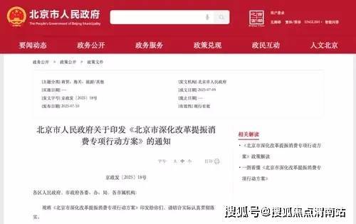 7月10日,为深入贯彻落实党中央、国务院关于提振消费、促进服务消费系列决策部署,更好满足人民群众美好生活需要,结合实际,北京市人民政府发布《北京市深化改革提振消费专项行动方案》。主要内容包括推动居民增收减负、优化服务消费体验、增强商品消费动能、延伸消费链条、打造多元融合空间、持续优化消费环境等。