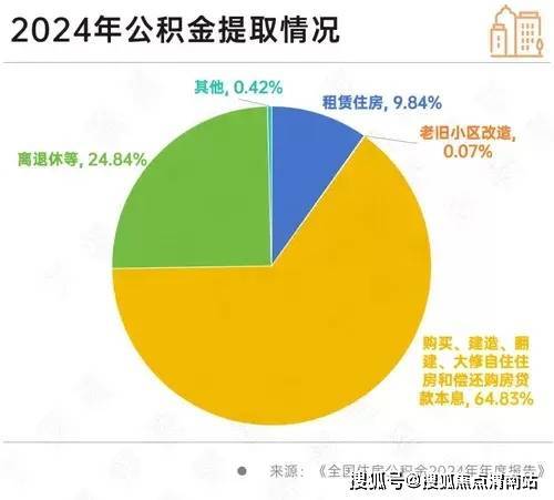 《全国住房公积金2024年年度报告》数据显示。2024年提取公积金用于购买、建造、翻建、大修自住住房和偿还购房贷款本息的占比约64.83%,有10%的公积金提取用于租赁住房和老旧小区改造,涉及约2263.97万人、2741亿元。