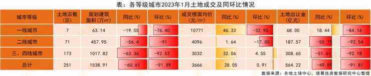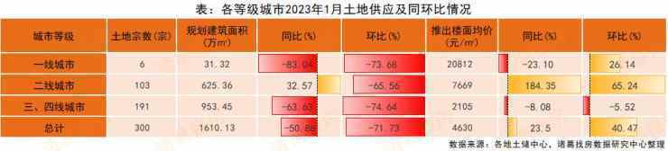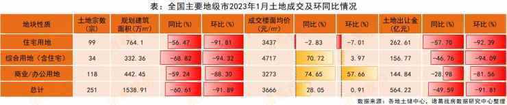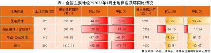 备注:用地性质包含住宅用地、综合用地(含住宅)、商业/办公用地;2023年1月数据截止至1月29日,下同。