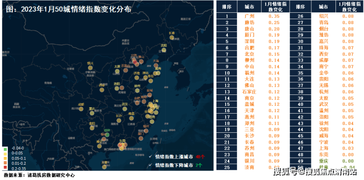 ★市场情绪明显反弹,2023年首月50城情绪指数近乎“全线飘红”