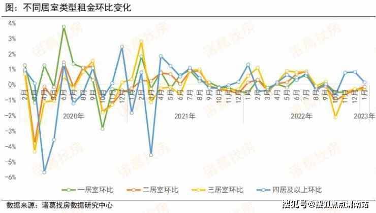整体来看,当前中小户型租金上涨动力相对不足,四居室及以上大户型的租金表现较为坚挺,连续3月上涨。