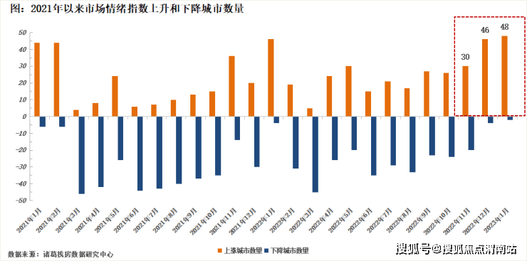 一、1月重点50城市场情绪指数迈入观望区间高位,创2022年来最大涨幅