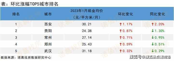 四、1月租金上涨城市数升至22个,西安、贵阳位居涨幅一二