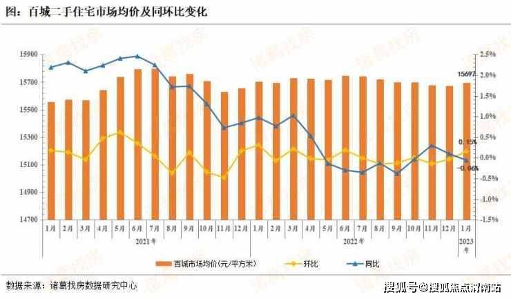 一、2023年首月百城二手住宅市场均价止跌回升,环比上涨0.15%