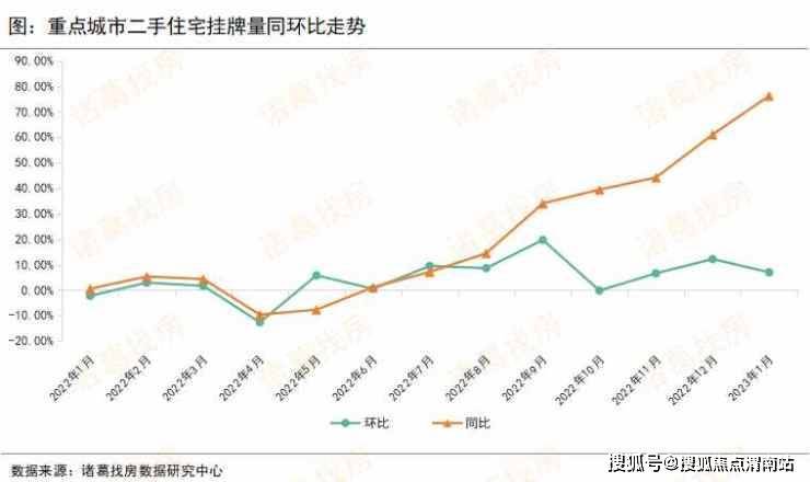 近两年来看,二手房挂牌量呈现波动上升趋势,进入2023年初,春节前出于资金周转、急需回笼资金等原因,业主挂牌出售意愿增强,大量房源被挂出。根据诸葛找房数据研究中心监测数据显示,2023年1月10个重点城市二手住宅挂牌量为182.2万套,环比上涨6.97%,较去年同期上涨76.23%。