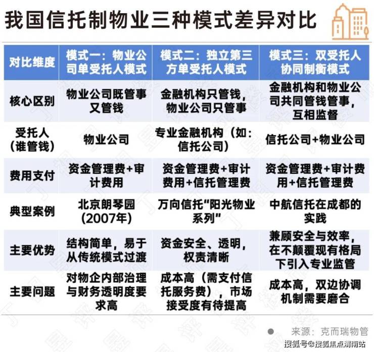 当前,在物业行业的实践中,围绕“谁来管钱”(即受托人身份)这一核心问题,已逐步形成三种信托制模式: