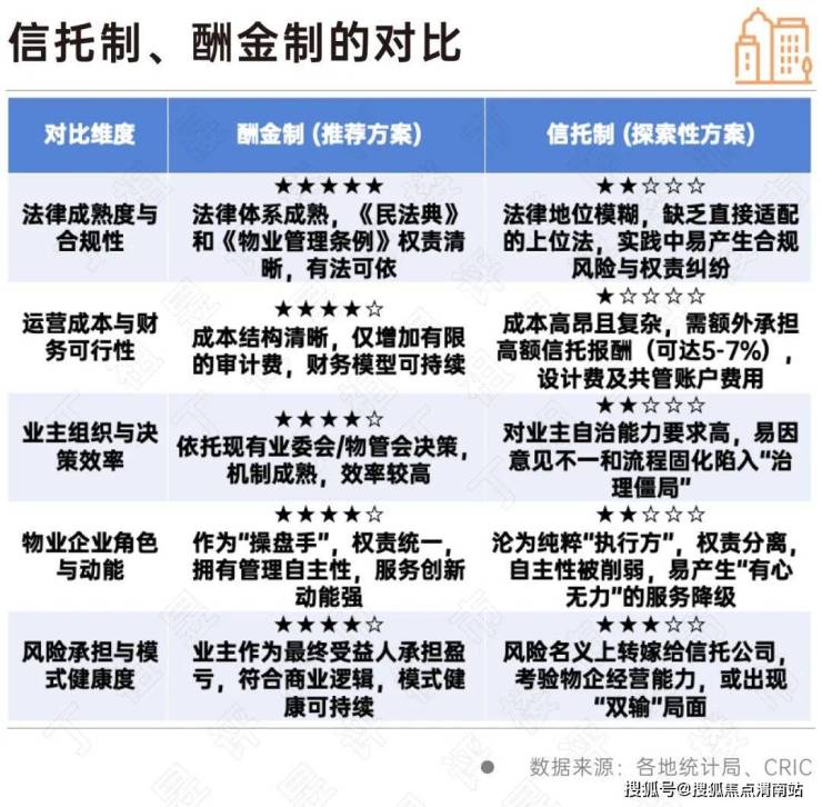 第二种是独立第三方单受托人模式,即委托第三方专业金融机构,如信托公司专门来管钱,物业公司只负责管事。优点很明确,资金安全、透明,权责清晰。缺点是成本高,因为需要额外支付信托服务费,市场接受度有待提高。
