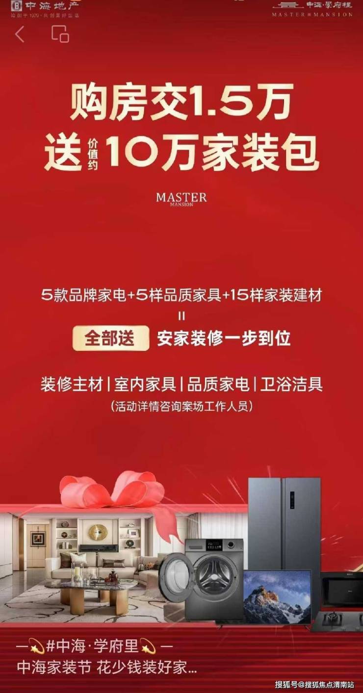 2025年4月,中海学府里购房交1.5万,送价值约10万家装礼包!