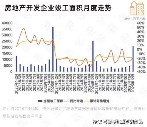 从单月维度看,12月房屋竣工面积同比下降18.3%,降幅较11月收窄7.0个百分点,降幅收窄态势印证各地保交房工作正持续提速落地。