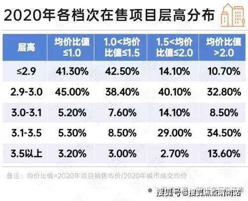 我们以项目销售均价与城市成交均价的比值为衡量标准,结果可以看到均价比值在1倍以内的低价盘层高普遍低于3米,占比高达86.3%。均价比值在2倍以上的高价盘层高普遍在3.1米以上,占比多达48%。高净值群体更愿意为立体空间“买单”,高价盘标配层高超3.1米。