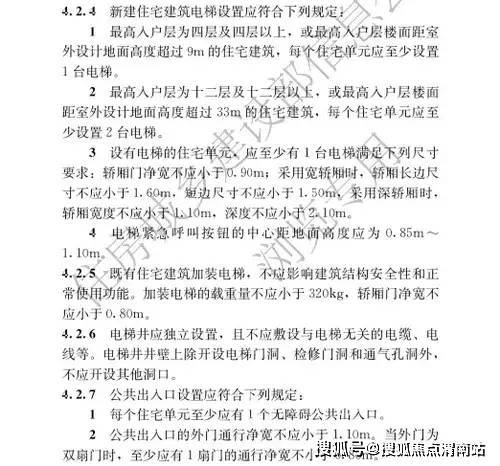 2、4层及以上的住宅必须至少配置一台电梯,12层及以上的住宅应至少配两台。